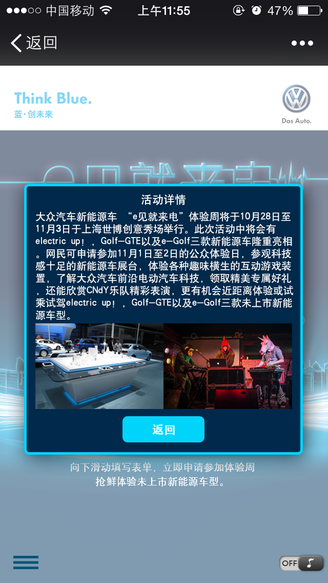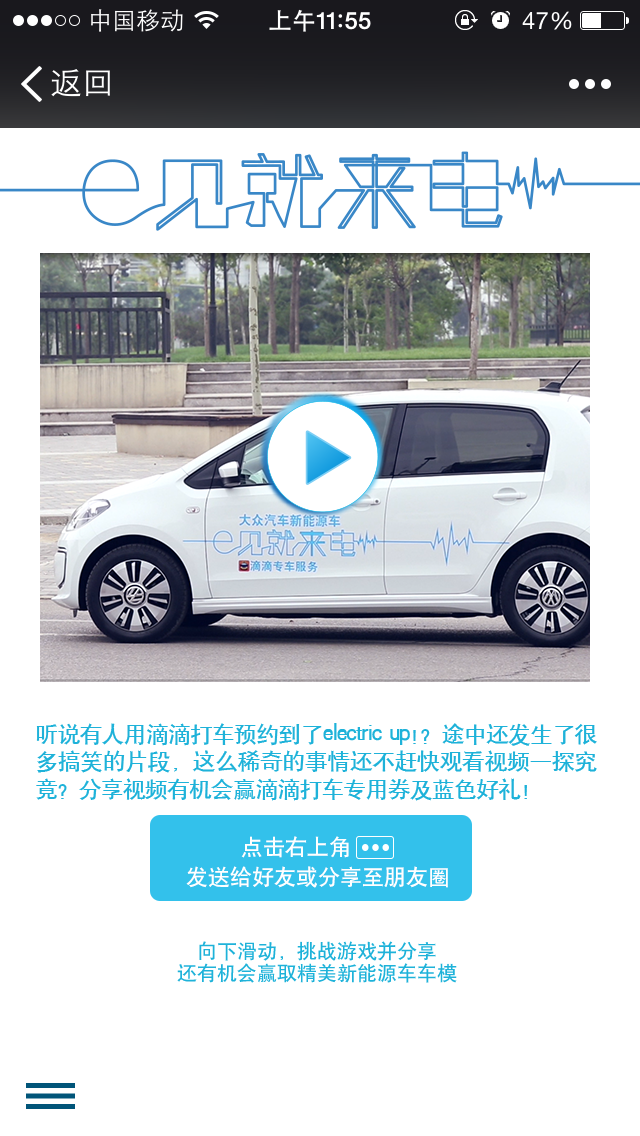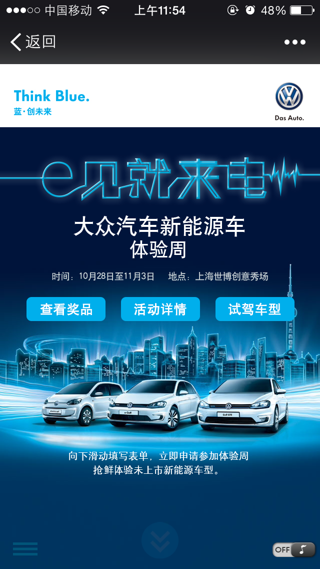 大众新能源车 “e见就来电” 微信活动