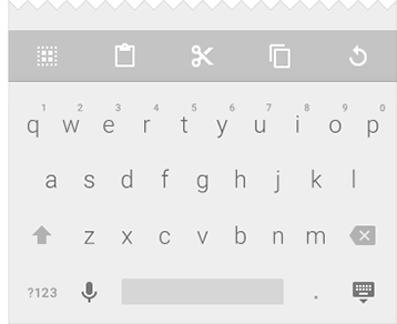 在iOS7的设计里,我们已经看到了这样的影子。最典型的便是“返回”按钮只有箭头和文案,去掉了原本的按钮质感。Material Design的action bar也同样采用了这样的设计,直接用icon来表达按钮功能。尤其是Material的键盘设计风格,最早对键盘风格进行极简设计的是微软的Windows Phone,Android和iOS相继跟进。而这次Material走得更极端,把键盘的按钮边框全部去掉,只保留了英文字母的按钮。我们不能说这样的设计一定是好的,这样的设计可能让用户对点击的精准度无法更快地判断,缺乏安全感。好处是在屏幕不大的手机上,去掉边框的拥挤感会给字母更大的空间。