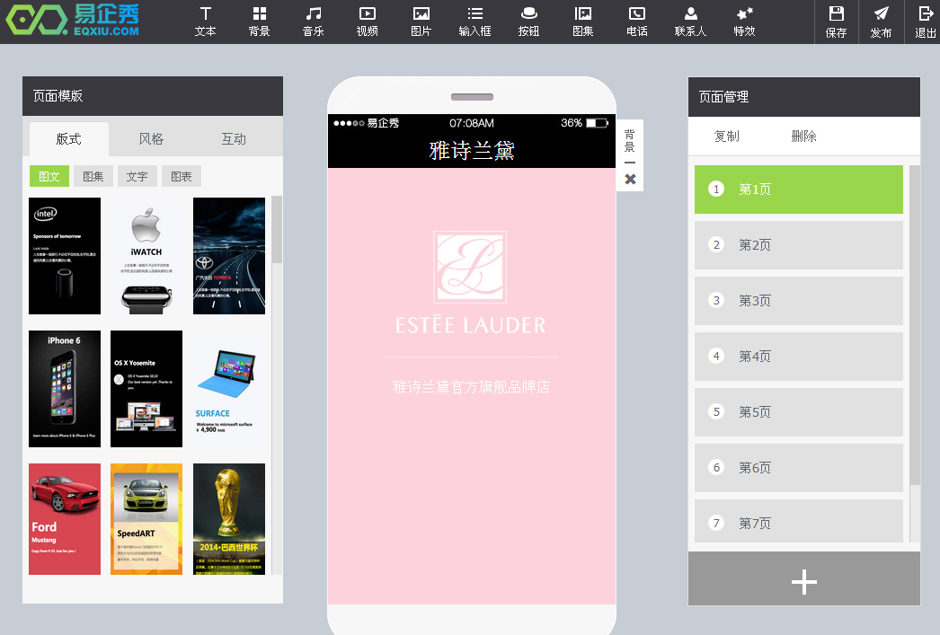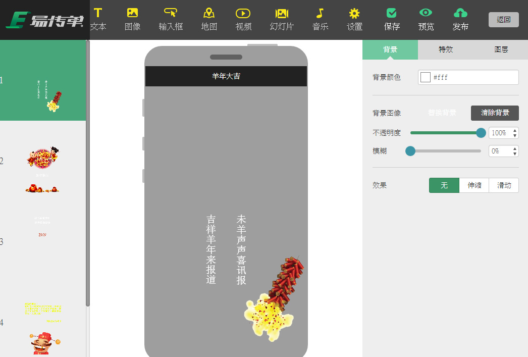 和易企秀功能类似,但模板数量较少。动画效果较少,但操作简单,容易上手。